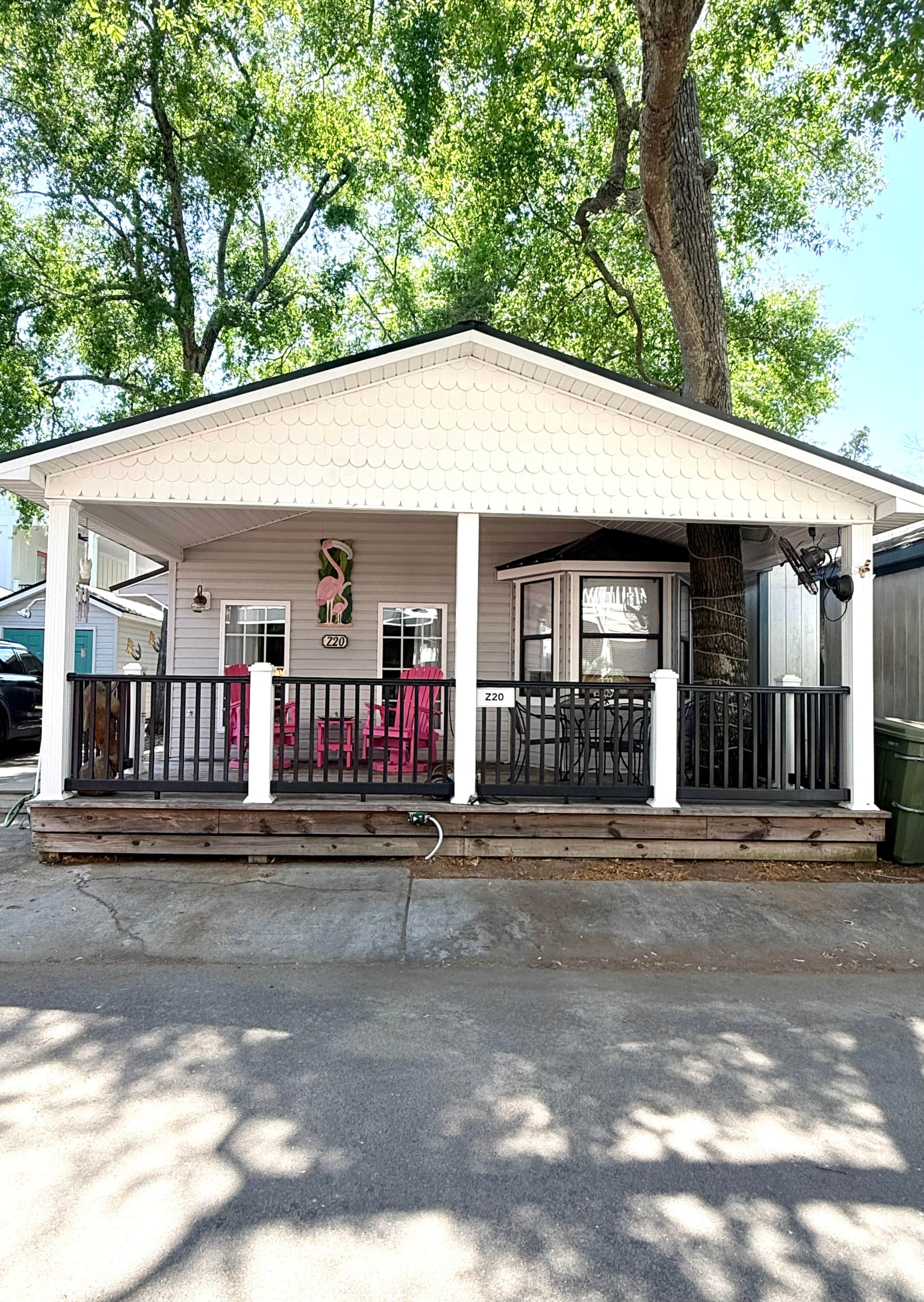 This cozy home features 2 bedrooms and 2 bathrooms, including one full bath with a shower and a half bath with a full-size washer and dryer. The fully equipped kitchen has everything you need to prepare meals during your stay, along with a dining table that comfortably seats four. Step outside to a spacious front porch with plenty of seating—perfect for relaxing—and an outdoor TV so you can catch your favorite shows in the fresh air.